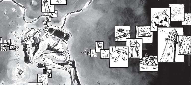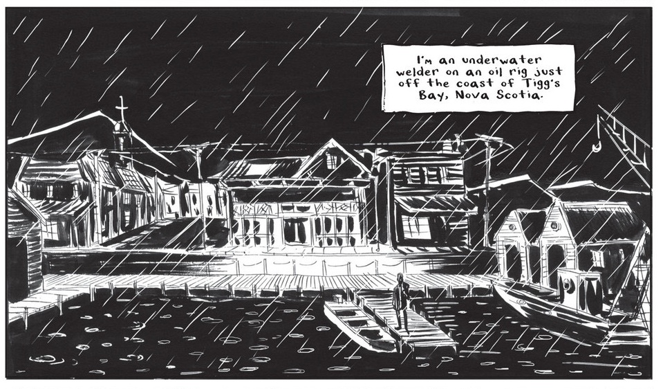 Jeff Lemire has written many a project and has had success with a number of independent books including Sweet Tooth and Essex County. He currently works for DC comics and is working on Animal Man and Green Arrow. The Underwater Welder is a book he has been working on for a long period of time and only recently managed to complete it. He is the artist as well as the writer and creates a deeply comfortable and anxious atmosphere. The book focuses upon Jack who is an underwater welder in a small costal town. He is a middle-aged man with an expecting wife. He is constantly distracted and his shoulders droop with the weight of their burden. His father drowned at Halloween when Jack was a small boy; he too was an underwater welder. This is a book about the bond between a father and his son.