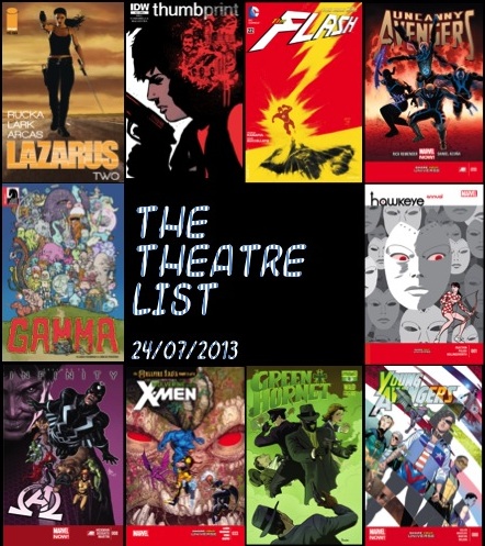As I slowly reduced my pull list to the remaining indy books, I was incredibly impressed with Gamma. A completely unexpected gem of a one shot, not to say that Green Hornet, Thumbprint and Lazarus weren’t impressive. Trinity War was reasonable and is progressing nicely but is not wowing me. I also notice that both New Avengers and Uncanny Avengers feature the introduction of the ominous opposing forces and are almost interchangeable as “war” based arcs. Batman/Superman was solid enough but the story just does not grab me and Jae Lee is beautiful but hindering the action, and just does not differentiate enough between the two versions of each character. I enjoyed Superior Spider-Man but it still lacks that defining feature for me. Despite all my complaints there were some brilliant books, including Hawkeye of course!