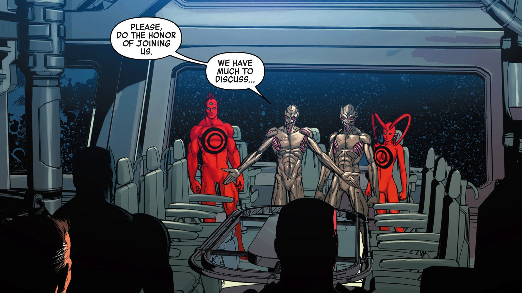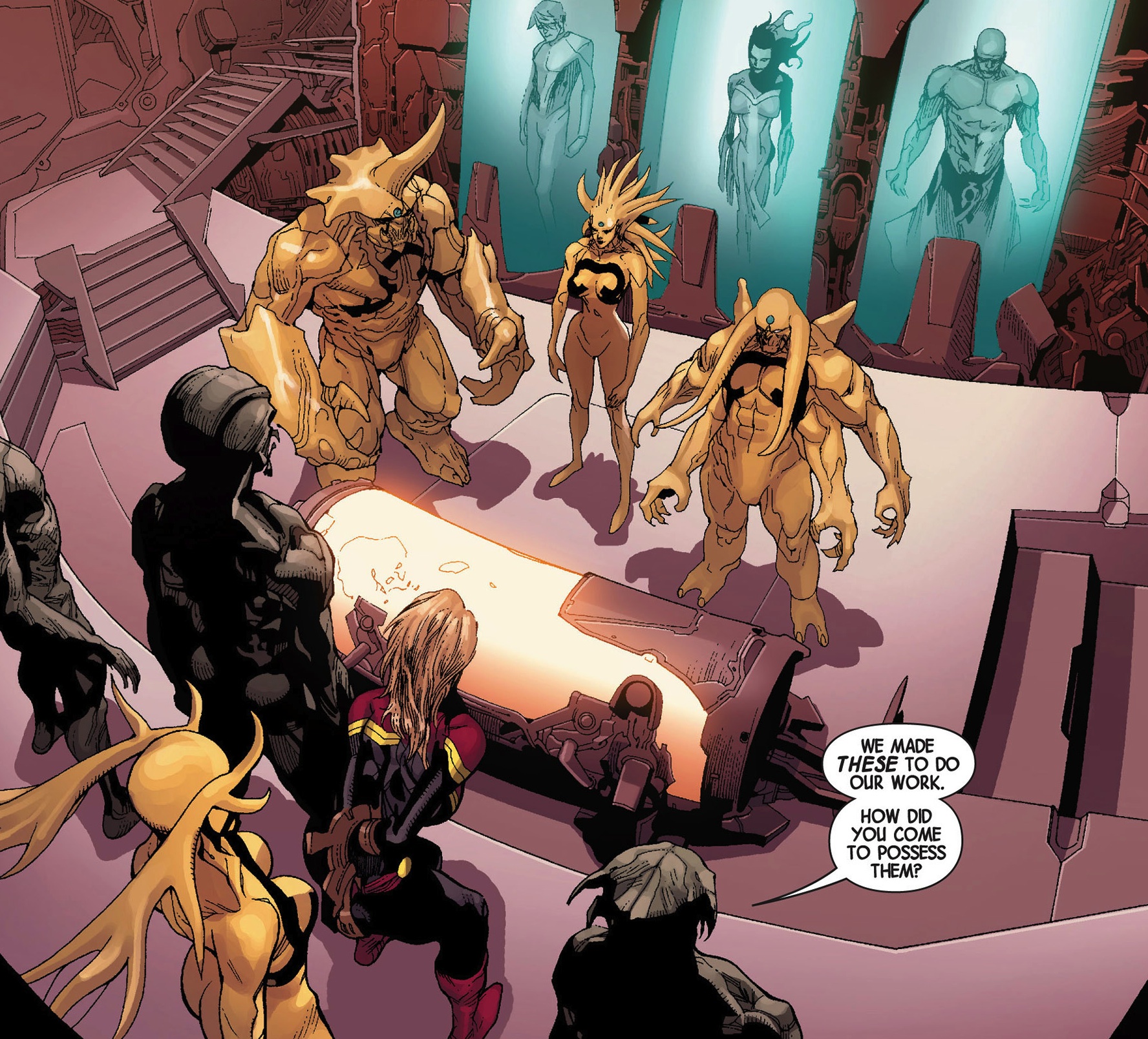 The War against the Builders is no small fight and an Intergalactic War Council convened, with multiple species together with the Avengers. The main players were gradually introduced throughout Infinity and Avengers, and it is worth getting to know them because they all have a part to play.