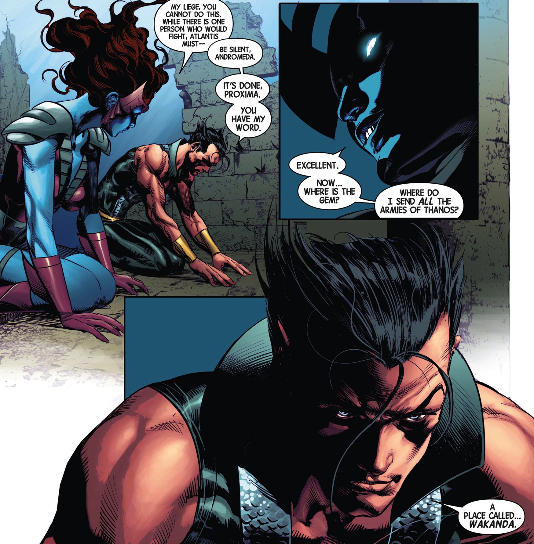 It is important to mention that in Namor’s resignation, he concedes the location of the time gem to Proxima Midnight. This is his moment to enact vengeance on T’Challa as he directs them towards Wakanda. Whether the time gem is there, remains to be seen.