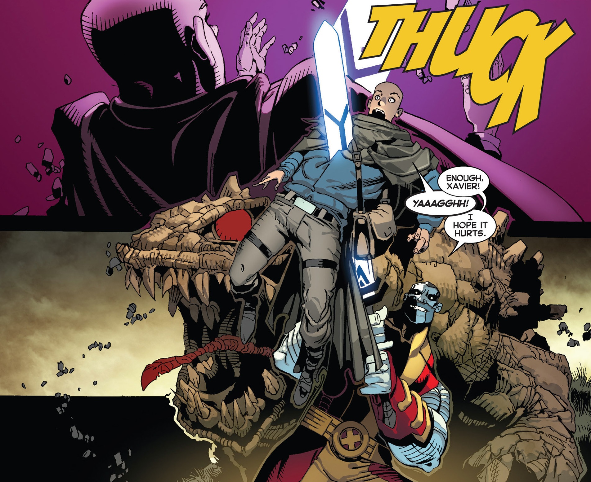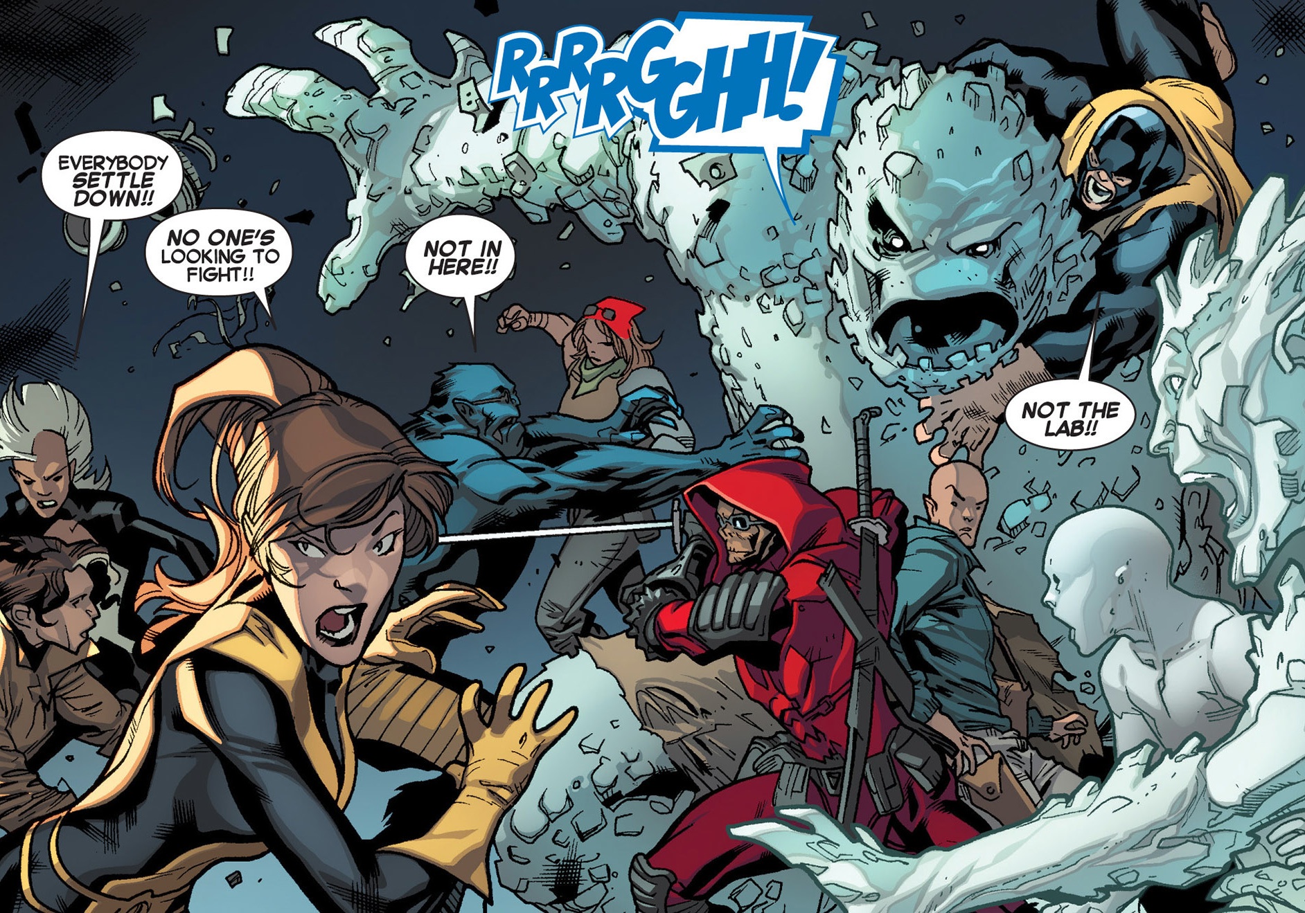 The next fight was psionically triggered by a mistrusting Jeanie, as her and Scott make an escape. It was a slight tussle with minimal damage, but led to the future mutant Xorn revealing himself to be none other than good old Jean Grey. I believe we are to assume that she is the Young Jeanie, who has been transported at the inception of All New X-Men. This relatively unimportant fray continues on a beach, where once again Scott and Jean slip away. But this time they actually reach their last hope of asylum, Utopia.
