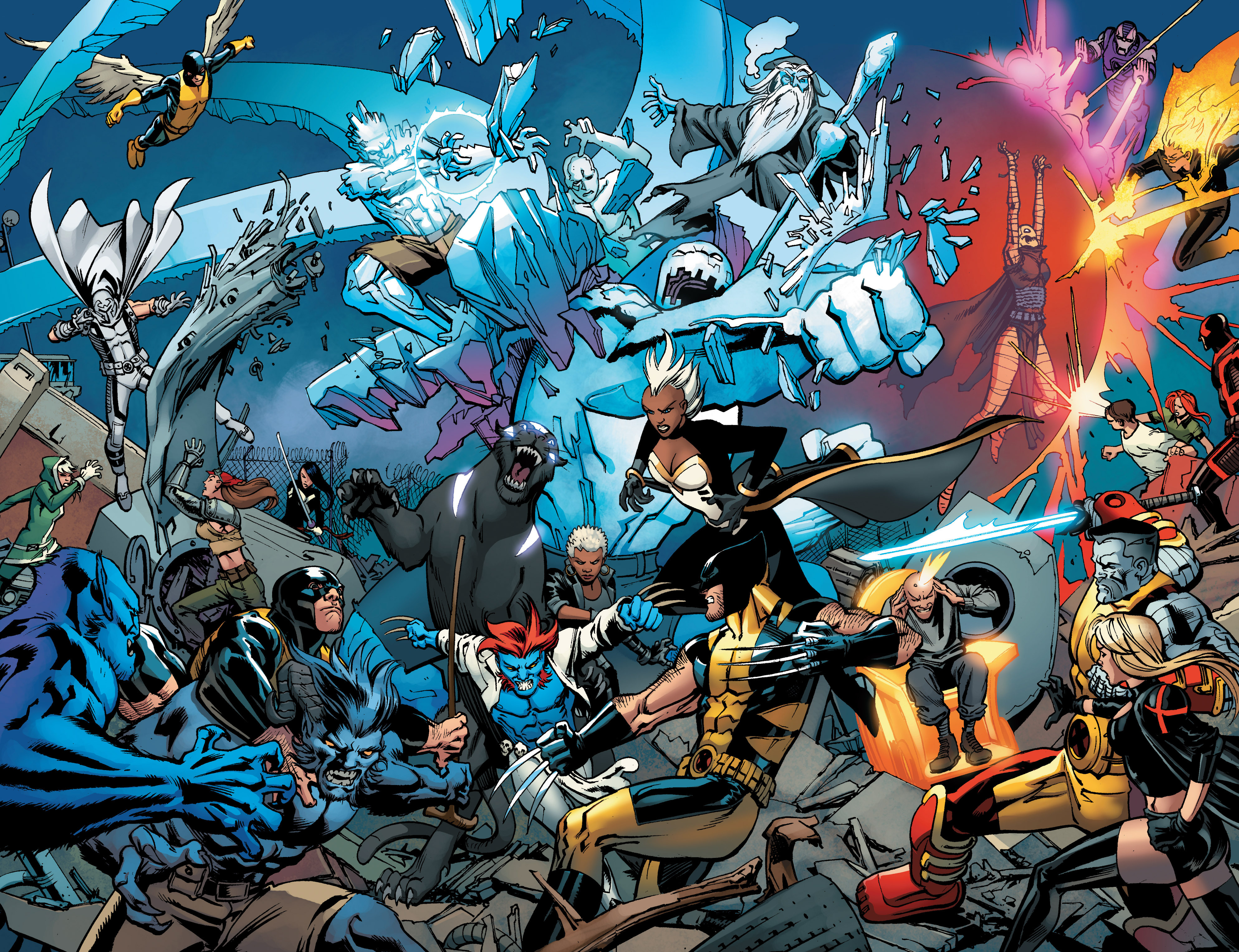 Whatever your complaints may have been about All New X-Men and Uncanny X-Men, and however you felt about the original five X-Men coming to the present, this crossover aimed to resolve some of these issues. The story began with the most obvious of time related anomalies, Scott dies in battle meaning his older self also ceased to exist. The temporal repercussions of this were never fully explored because he was quickly revived. Therein lies the crux of the argument in the very first issue, and it was expected we would have some interesting plot threads unravelling from this baseline. Instead we had multiple skirmishes amongst approximately five X-Men “teams” and a S.H.E.I.L.D. arsenal slipped in for good measure. It serves at least one suitable purpose, a recap of the story: