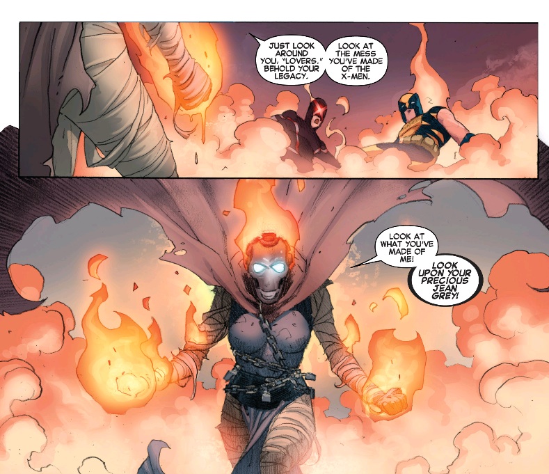 I would not even be writing this paragraph if it were not for the epilogue that gave Wolverine the final word over Cyclops, regarding his role as a professor. Throughout the arc he played no role outside of being manipulated psionically and physically, and was far from pleased to be rescued by his nemesis. Logan and Scott bicker incessantly like children and the gall of Wolverine, of all people, to question Cyclops morality is ridiculous. It was almost as if there had to be animosity when the two teams combined, because it was that impossible Scott and Logan could fight together. It was artificial, poorly written and unnecessary. The ideological argument between these two characters was not the focus of the story and did not need to be so childishly borne out. In any case, nothing has changed.