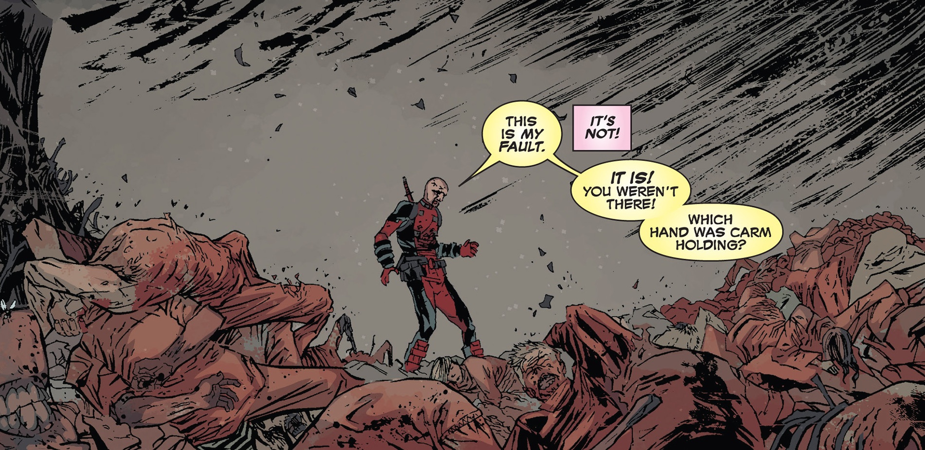 “That really depends on the book. Something like Deadpool where Declan (Shalvey) does the drawings and I look at the script that Gerry has written. Declan and I have a conversation about any advance notes that he has. Like whether or not he wanted this to be in a red room or this guy is wearing that colour or whatever. Then I just go with it and I try to keep in tone with the script. For instance Deadpool, you know where things get really dark? It just gets clouded and clouded and clouded. That was actually really cool and quite the opposite of what Declan wanted. Declan wanted it to be white ash, he thought that cremated bodies were white. But I actually corrected him after we did some research, which I also do in my comics colouring, and it was actually really dark and black. So it made it so much more intense.”