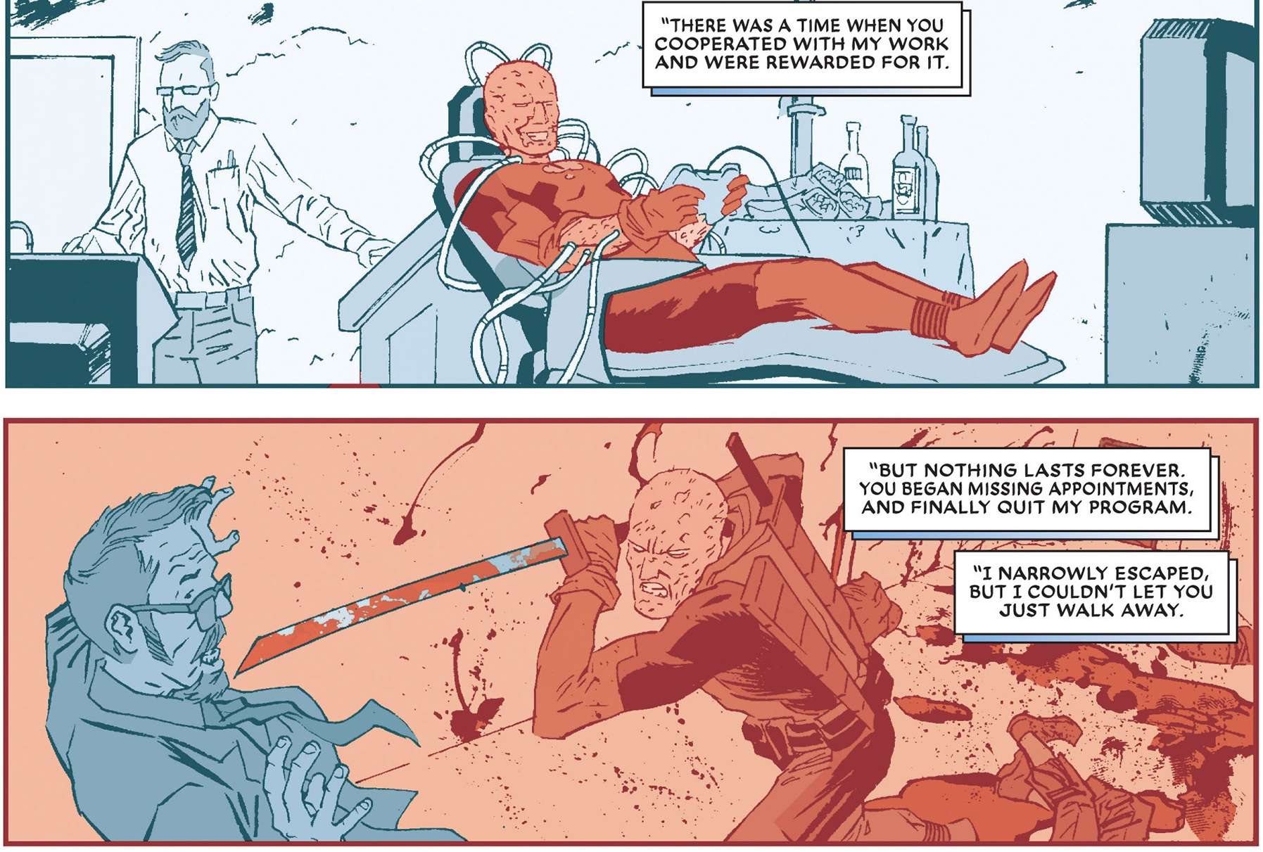 “Yes, that is the flashback stuff. That was on me as well. It’s weird, I colour so many books, and there are so many flashbacks. I have to make each one different. I’ve got this thing with 3, where it’s all black and white with bloodstains over it. I did the Captain Marvel ones that are all bright yellow. It’s not because it’s easy, it’s because I’m hoping that it’s reflective of her unique ability, which is bright yellow.”