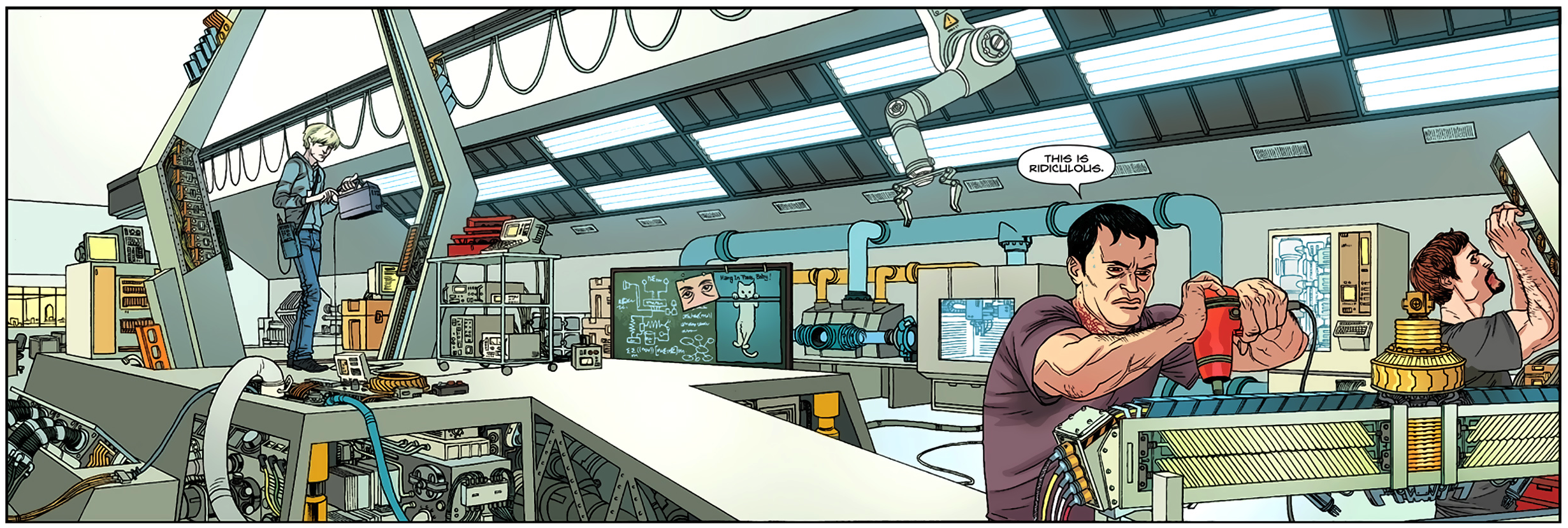 As she revealed her artistic approach to yield individual colour palettes, I asked about a specific comic that I had written a colouring blog post on: Nowhere Men. This book is a modern sic-fi book and the colours are so vibrant and effective.