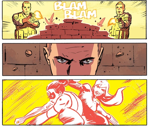 Whereas in Zero #1 Walsh took a gritty and ugly approach to the battle, this one is a little more alluring and picturesque. There are some fantastic kung fu poses and choreography interspersed with some solid gunplay. In fact Walsh brings out a spatial awareness not often depicted in many fights. There are wide-angle shots to keeps the characters intact and in continuity with one another. A blow-by-blow pictorial can be spaced using close up facials or progressive movements bringing an intense dynamic to the page. Most importantly these pages flow smoothly and almost follow a cinematic trajectory, providing fierce combat amongst emotional angst. The image of Coulson trembling with fear is genuinely traumatic and worrying. A lot of credit must be given to Wilson’s colouring because he provides valuable distinction in all environments. It is appreciable how he subtly shades the brightly coloured outfits in darker environments but allows them to shine in the light. It is impressive how he uses the shade to darken faces and provide emotional depth to their dialogue. He utilises a fantastic red and yellow colour scheme to emphasis the explosive noises of battle but also the intense moments of physical combat. It is really a well-constructed comic that excels on almost all levels, even the Tradd Moore covers bear a physical intensity mixed in with humour.
