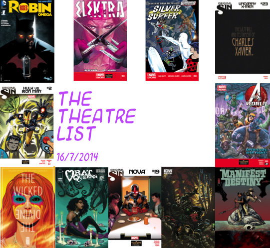 Yes this is the week where I finally rant about the the art being all important to a book, and how changes to that radically alter the theme and tone of that title. It is even worse when the artist do not complete a whole issue. Please forgive me if I am showing any signs of disrespect because I appreciate it must be terribly difficult to draw a monthly comic, my comments are focused upon the trials of the art form itself, to a point. This week saw some examples of this and reflected in the removal of some of my favourite titles from this list. Firstly She-Hulk was very much a Pulido book for me and I have always loved his art since the Batgirl/Robin Year Ones trades. Now Shulkie looks different and the art is much darker and grittier which does not match Soule’s writing as well. Ms Marvel is a big problem because Alphona has a beautifully soft style that embraced the love that Kamala embodied, but now it looks too thick and inconsistent and does not reflect Ms Marvel’s personality. Magneto actually almost made it onto the list because Bunn hit a raw nerve with Magneto that resonated with his current character. I quite liked the story and the way it was draw because the fighting scenes were draw by a different artist to Walta who took the serious deliberation panels. It almost worked but it does not hold water as a complete issue. Changing artists is the cardinal sin because even writers can change and keep a character similar in personality, but the art really draws that character out. I must make a quick note that Original Sin is not on the list, not because I do not enjoy the book, but because it has not moved in almost three issues. Lets get to the good stuff.