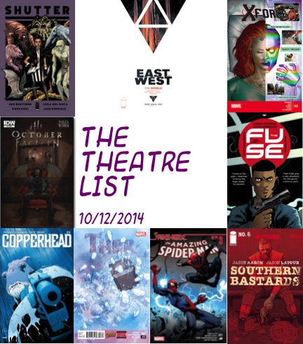 So there were some amazingly good books out this week and the ones that failed to make the list were not terrible either. Batgirl is a very difficult book for me to recommend even though I like it despite the masses of problems it contains. There are some good storytelling aspects and delightful art at times but perhaps it is just not marketed towards me. The clothing is frankly ridiculous at times, especially as they head to an evening function and the social media aspects are a little tiresome and are far too in favour of self promotion. I may just be the wrong generation for this book but I need to write a post about it soon. Sex Criminals is a book I am tiring of, even though I liked the idea of a porn star origin in this issue. The main story is incredibly flat and thoroughly uninteresting, and the Wicked + The Divine porn parody was just not enough to keep me engaged. Both Punisher and Rocket were solid books but the stories produces little more than average tales. Im not really sure what the Uncanny X-Men Annual was about but I found Sorrentino a little disappointing. The ideas were there but the execution just wasn’t right, not as good as the work on Green Arrow anyway. I am not ashamed to admit it but Supreme made no sense to me this week. I often try quite hard and grasp the fundamental concepts but this issue just didn’t cohere enough for a recommendation. Last, for a change was Axis, which was actually a better issue than normal and a nice little twist at the end, but Im just not bothered about the inversion. I am not sure if I am able to enjoy this arc given the issues that have come before. But this is more my personal issue than anything else! So let us move onwards!