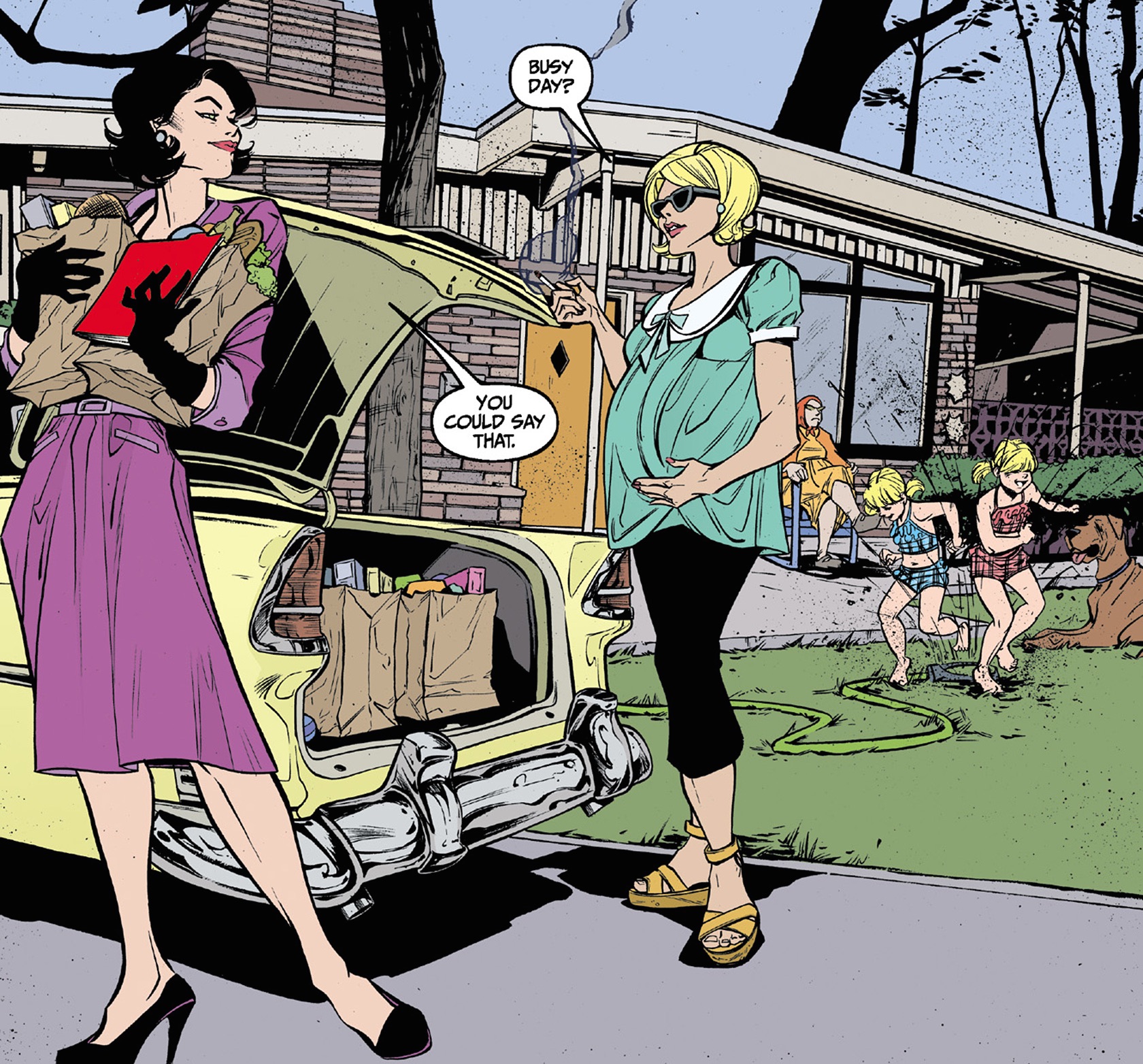 Josie always finishes what is asked of her so far in her career but she is also torn. Her boss wants her to “move up” in the company but she is content and wants to be able to continue her alternate lifestyle. Which is just to be a normal sixties housewife managing the tug and pull of raising two children, whilst still trying to get dinner on the table for when her husband comes home and handle a live-in mother-in-law who is slightly suspicious of what she actually does when she leaves the house. Lady Killer has the beginnings of a much deeper story, despite the art alone being enough to keep you looking. It is even more perfect because it portrays that any woman can have it all, a husband, children and a career, especially a badass one like being a beautiful unassuming cold-blooded assassin. With the advent of a new mission and a chance to advance one aspect of her life, the pressure escalates and she is challenged more than ever before. How important is her family and children to her? Can she actually make the impossible choice? The reason why this book is so impressive is that it makes you take a second very hard glance at the elegant and sophisticated Josie Schuller.