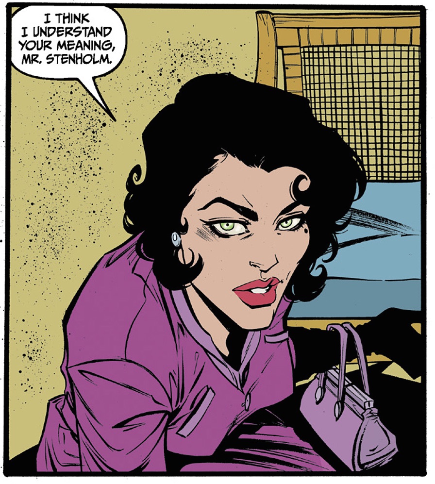 In issue two she starts working a “job” at a Kitty Kat club in order to lure a target away long enough so she can handle her “business”. Nobody has been able to get close enough to succeed at the contract, so her boss sends her in to use her womanly ways to get near him and, of course, Josie does. Joelle Jones skill for capturing such a time piece period and blending it so well with the brutality of the scene to make it look horrifically beautiful is exceptionally impressive. The artist is able to have Josie murder in such a way and still look stunning, her posture and form are always prim and proper. Even if she isn’t perfectly put together she still manages to clean up quickly and explain it away as something more innocent based on her ability to appear completely naive.