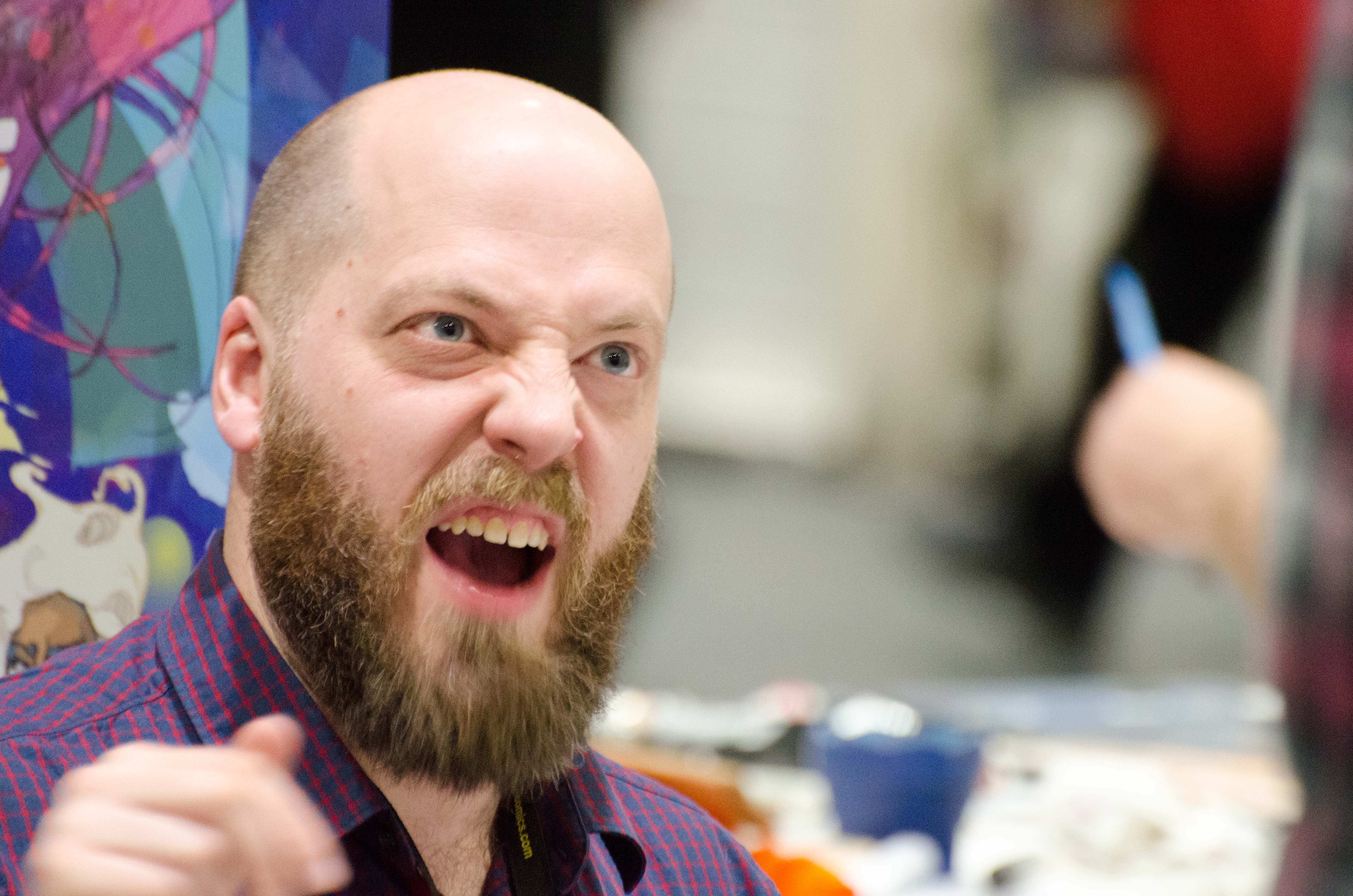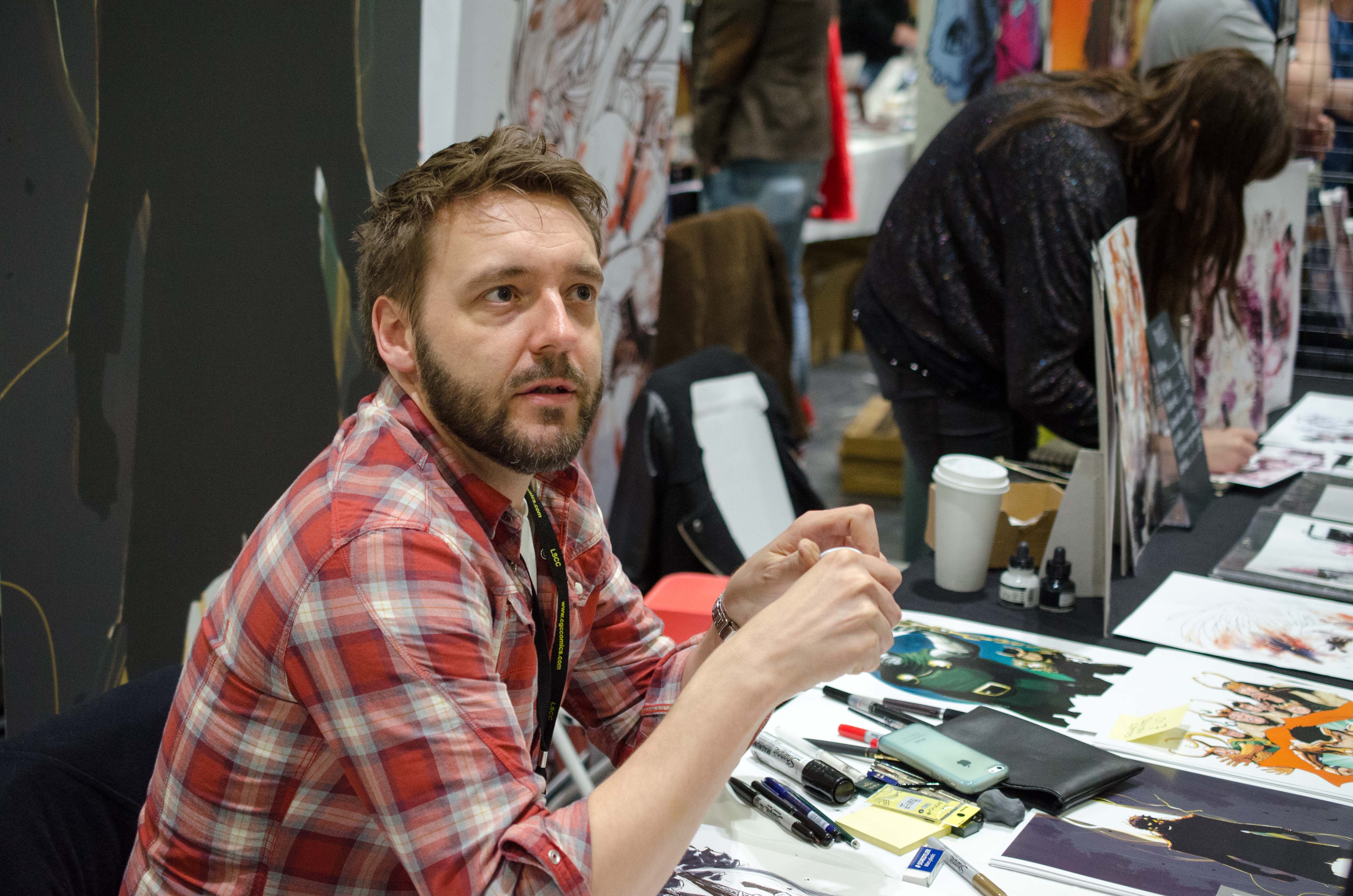 As I spied Christian Ward, I kicked myself for not bringing ODY-C to the con but then I realised I did not really enjoy it. It wasn’t that I didn’t appreciate the art or writing but I found it very incomprehensible. My first question to Christian was whether he had read the Odyssey, obviously he hadn’t but had a rough idea of the main bullet points. Matt Fraction certainly has and I inquired about the style and creative control. He pointed out that they talk each day about the issues and the progress of each page. He said that all the styling is his own and the characterisation is specific to the characteristics of the person involved. I also remarked that the colouring was intense yet incredible and Christian stated that the book was firmly his vision. As with all artists, they enjoy creative freedom over all else. I also mentioned that I found the book difficult to follow and it was weird. Christian said that the book seems completely natural to him because that is how he pictures it inside his head and so the weirdness is completely normal to him. I said that no one could argue how aesthetic the book was and went on my way.
