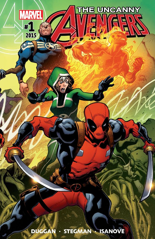 There is one reason why I chose this book and that is Gerry Duggan’s Deadpool. The story was perfectly adequate with the usual issue no.1 twist of a surprise new villain. But it was great to see Deadpool again being his new usual ridiculous self. Stegman’s art is a little amiss with certain characters, especially Steve Rogers but should fit on the whole.