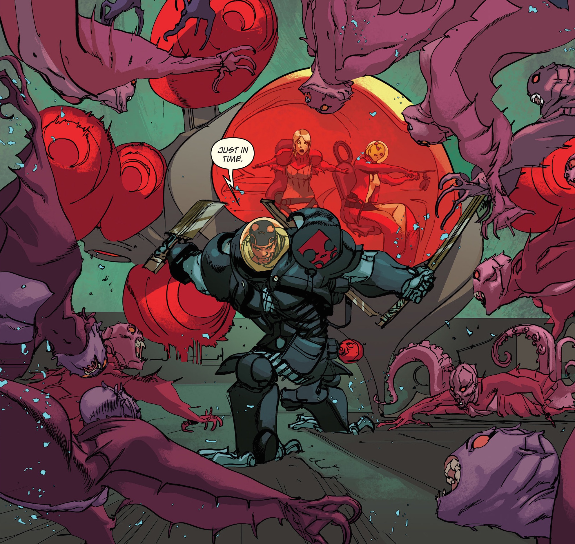 Stel’s story is told through the people around her and this particular issue sees many of the supporting and enemy cast pressurise her. The enemy mother who is fending for her child tries to convince our protagonist to allow her young to feed on her blood. She provides the counter arguments to Stel’s motivations for her family with a harrowing discourse on the failings of caring and the lack of appreciation her family have for her. It is here that Remender tests the metal of his heroine as the feeding process leads to memories of her lost husband delivering the same diatribe on unconditional love. Even her crew who are indebted to Marik for saving them enter a suicide run to rescue Stel, giving further potential sacrifices to bear. It is pitched in such a way that life would almost be easier if it was Stel that was the one that dies. This issue in particular chips away at Stel in so many ways that her resilience is not just tested but broken.